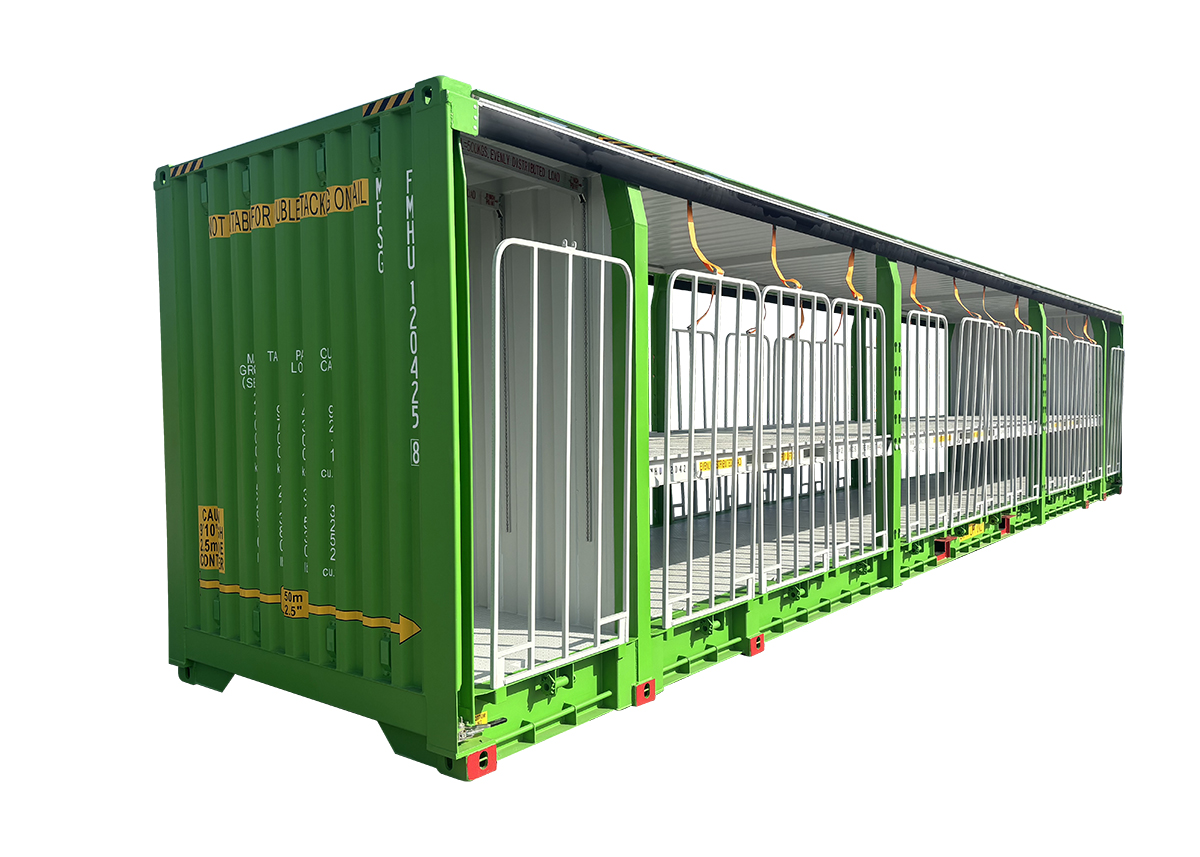 側(cè)開門箱及側(cè)簾箱是一種能同時(shí)滿足貨物從端門及側(cè)門裝卸的集裝箱,裝卸效率高,其側(cè)面可適用超大尺寸貨物的裝卸。